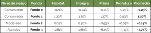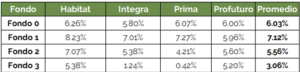 En resumen, al igual que el mes pasado, el Fondo 1 fue el que tuvo mejor desempeño y el Fondo 3 fue el que obtuvo un rendimiento negativo.