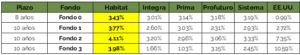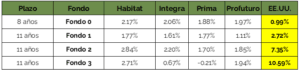 En el siguiente cuadro se puede observar cómo, en el 50% de los casos (Fondo 2 y Fondo 3), las inversiones de EE. UU. han tenido un mejor rendimiento que el otorgado por las AFP. Asimismo, la AFP Habitat se mantiene como líder de rentabilidad en los cuatro tipos de fondos que existen.