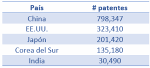Ranking de innovación por número de patentes (2022)