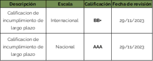 Hay que tener en cuenta que un bono puede tener una alta calificación a nivel nacional, pero esto no implica que tenga la misma calidad o riesgo a nivel internacional.